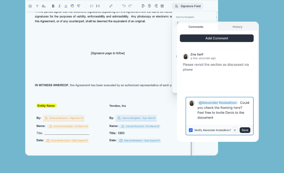Send, negotiate, and sign CDAs without portal friction